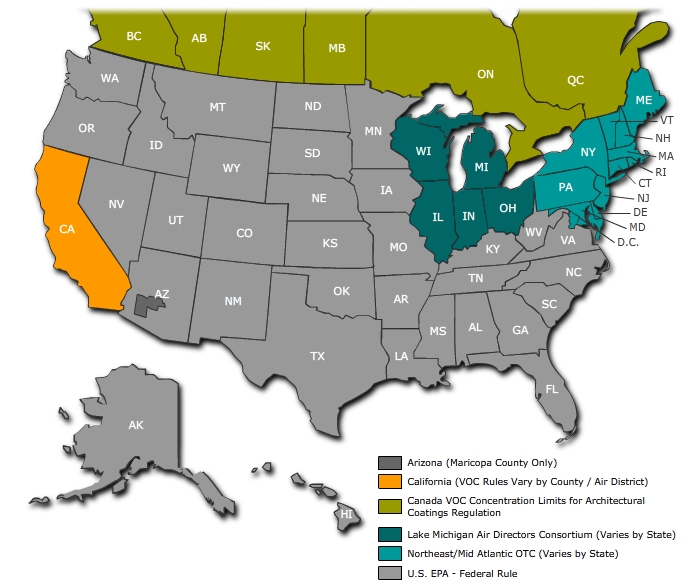 W. R. MEADOWS VOC Compliance Map: Construction Liquids